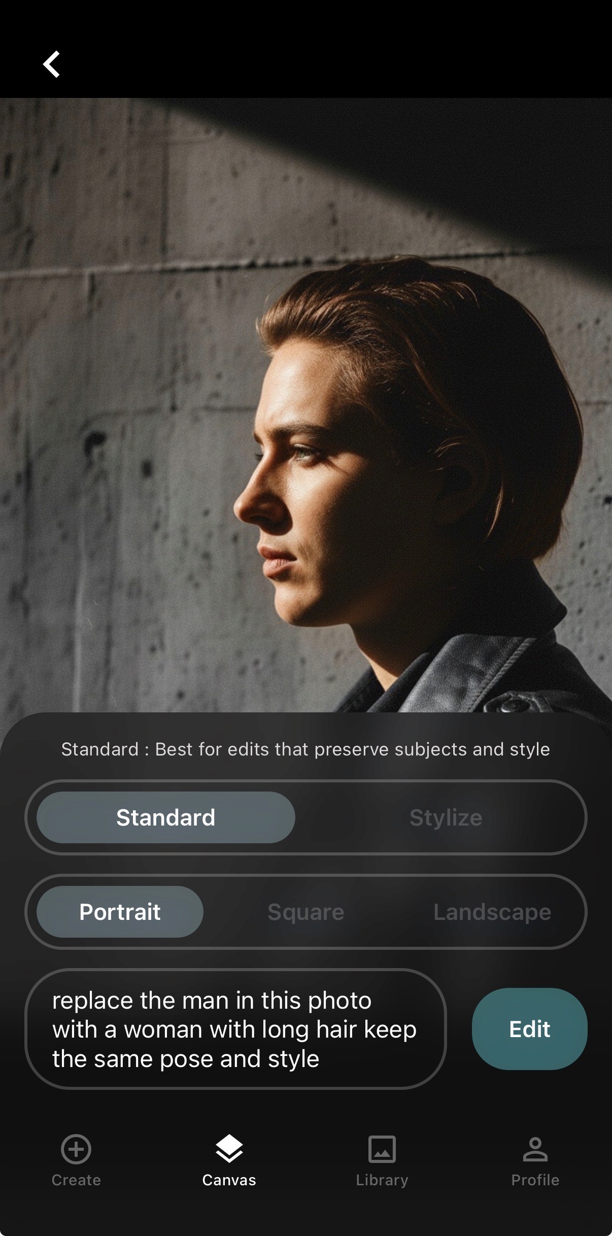 Refine any image using two modes: Standard for better subject consistency, or Stylize for bolder stylistic changes. Make adjustments with a single prompt - no complex tools required.