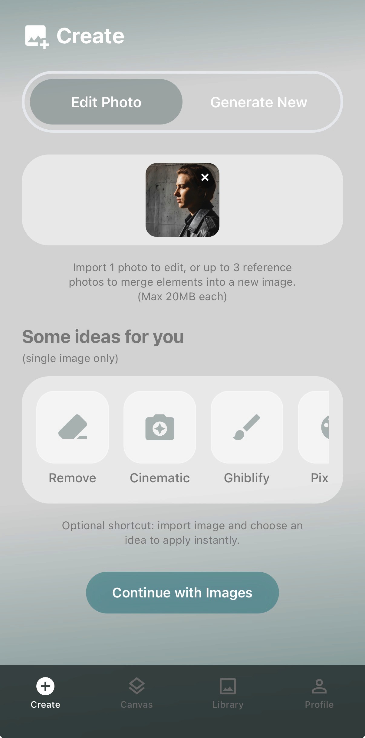 Two easy ways to create: generate fresh images or edit photos in your pocket